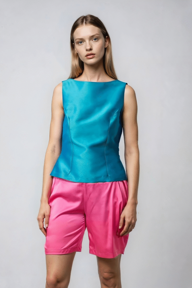 TWO-TONE SATIN PANEL TOP (One-To-One limited piece)
