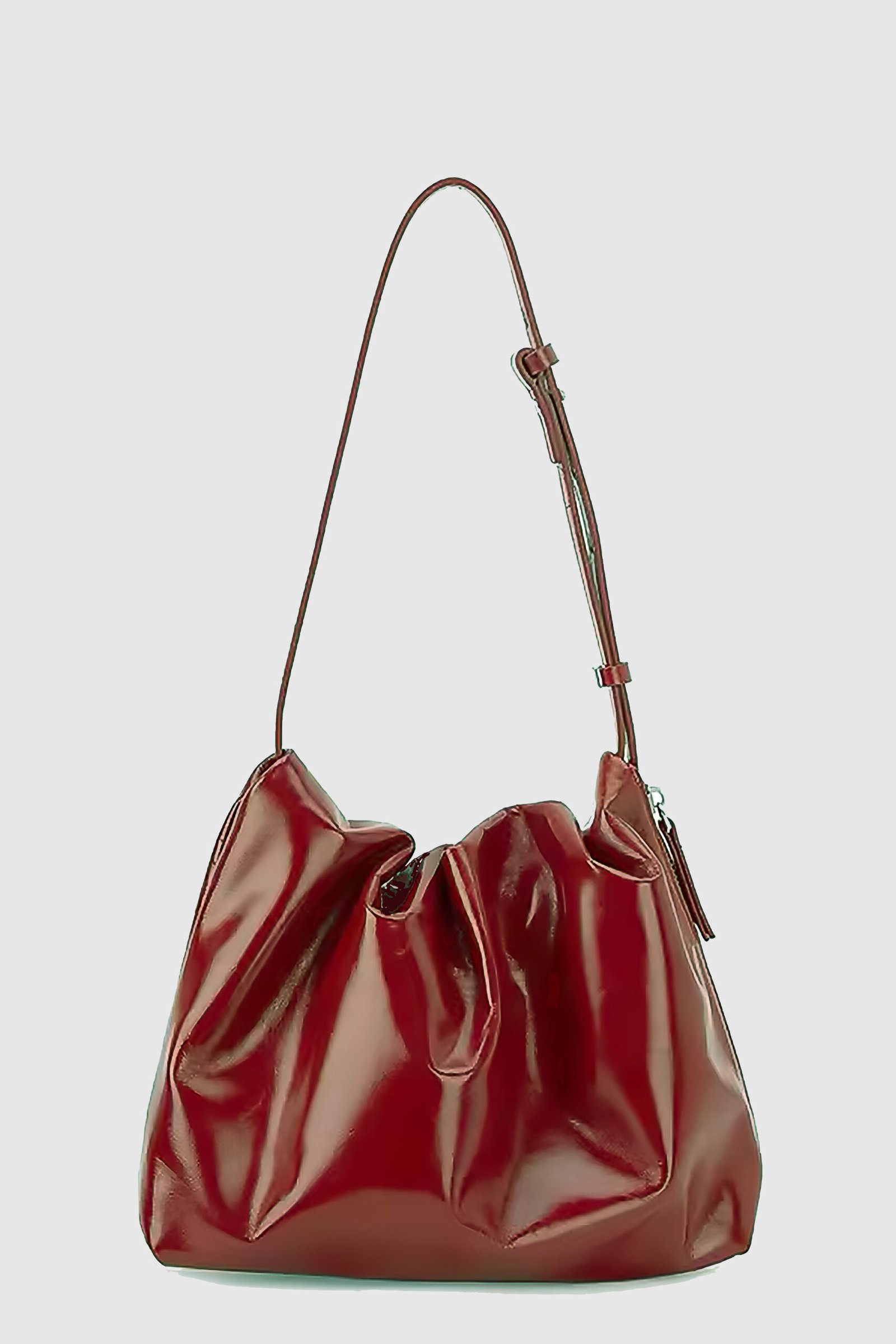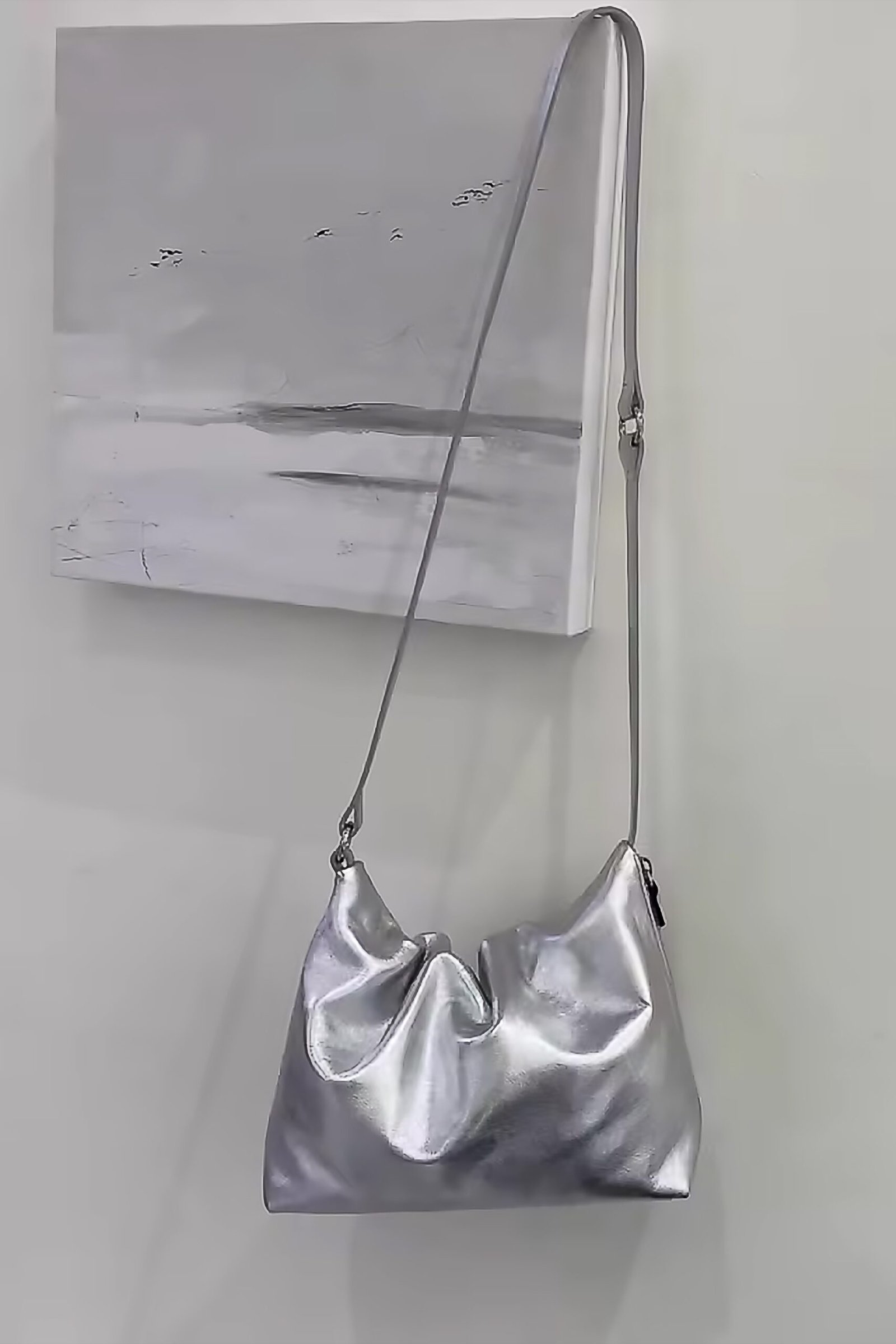 Elevate your everyday style with this modern shoulder bag, designed with an asymmetric silhouette and smooth genuine leather finish.
