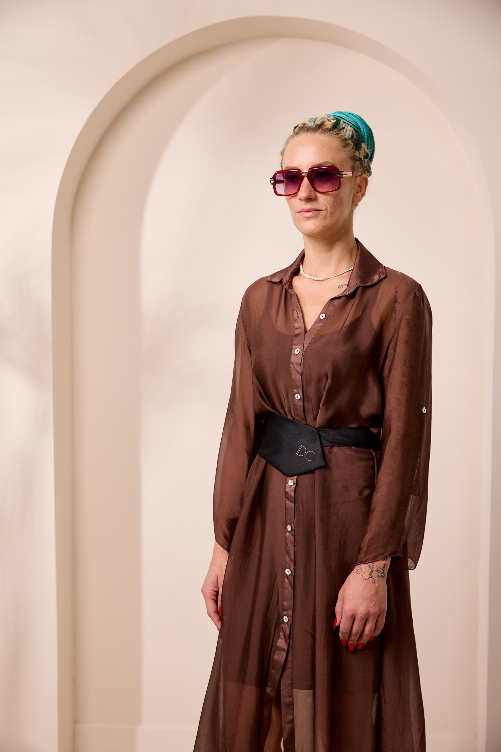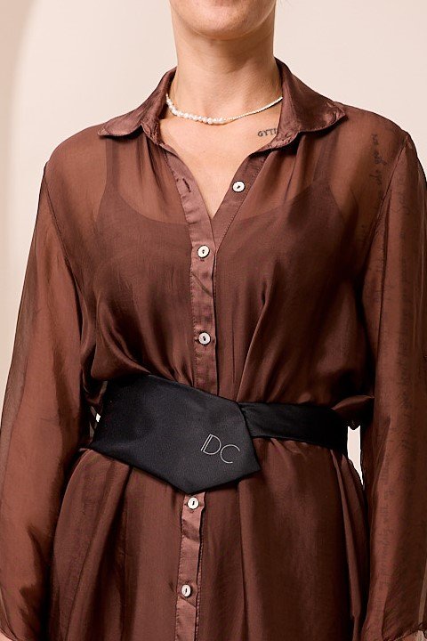 Elevate any look with this sleek satin tie belt, crafted from luxurious Italian satin for a smooth, lustrous finish. Designed in a structured wrap style, it beautifully defines the waist and features the subtle embroidered DC logo at the front for a refined touch
