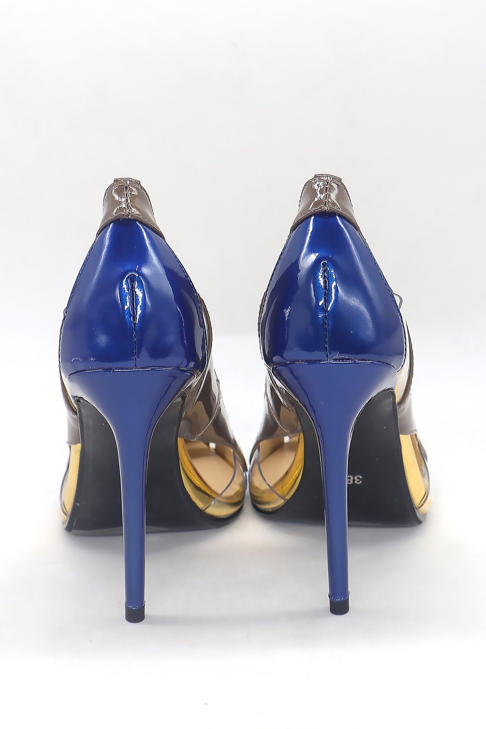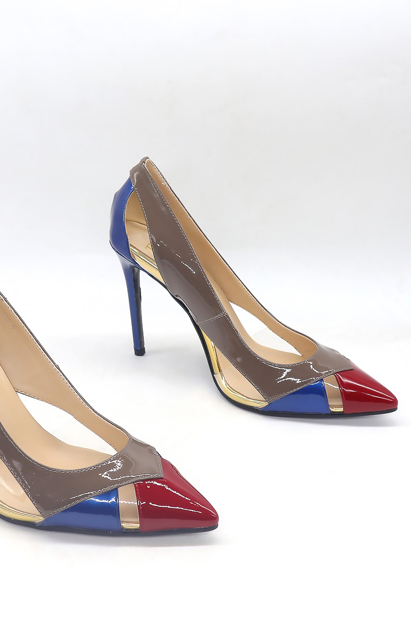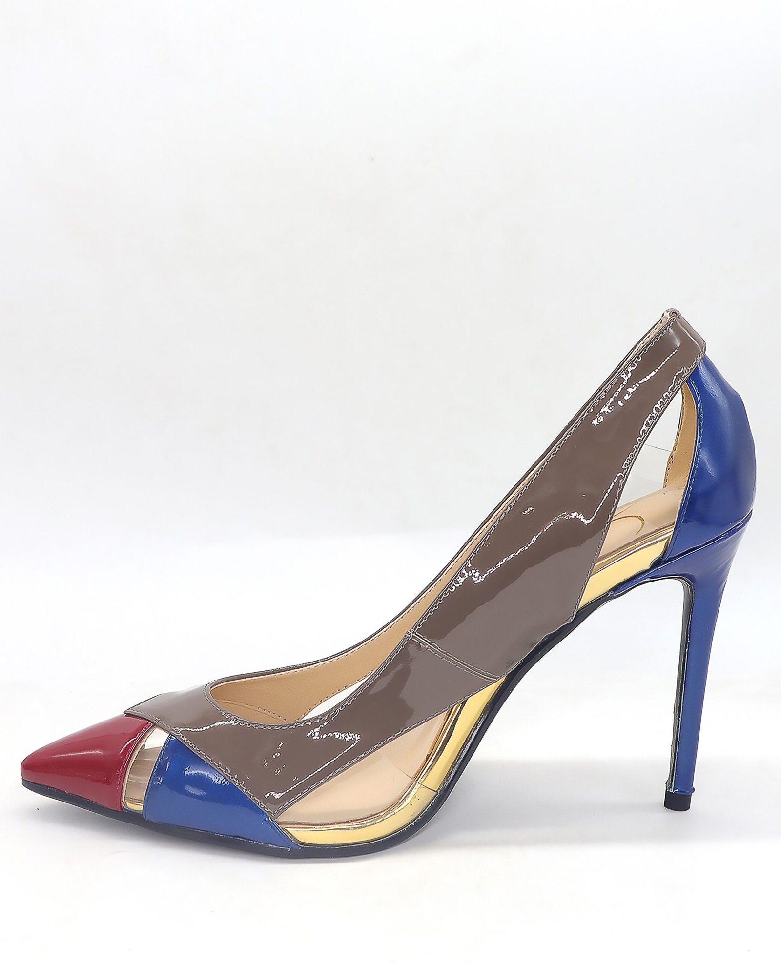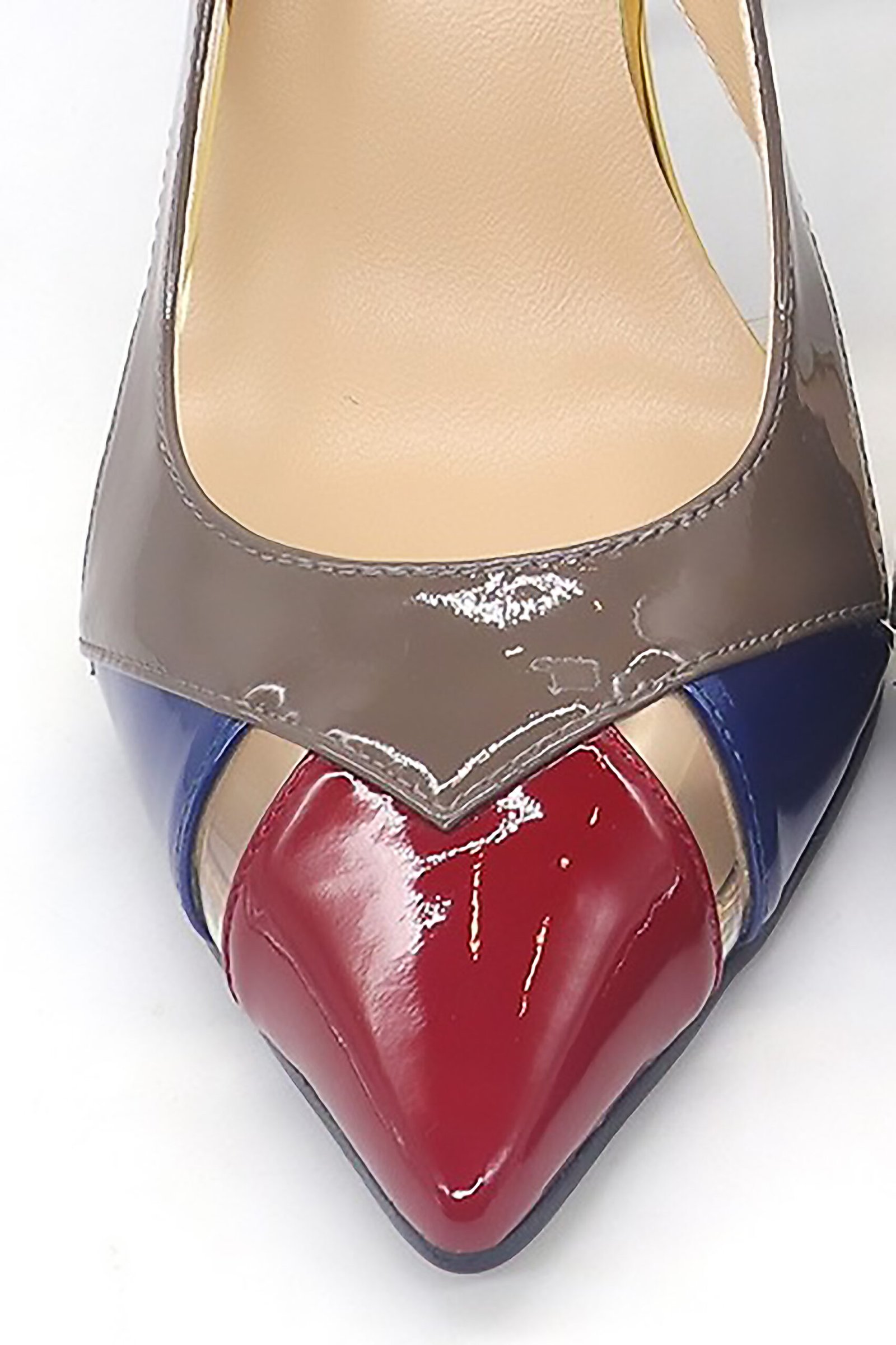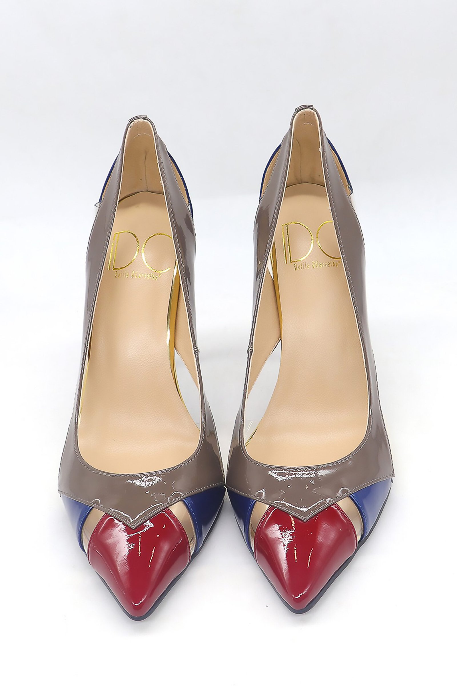 This avant-garde style mixes retro colour blocking with sleek architectural lines. A bold red toe, blue base, and taupe upper make this a confident, artistic expression of modern femininity.