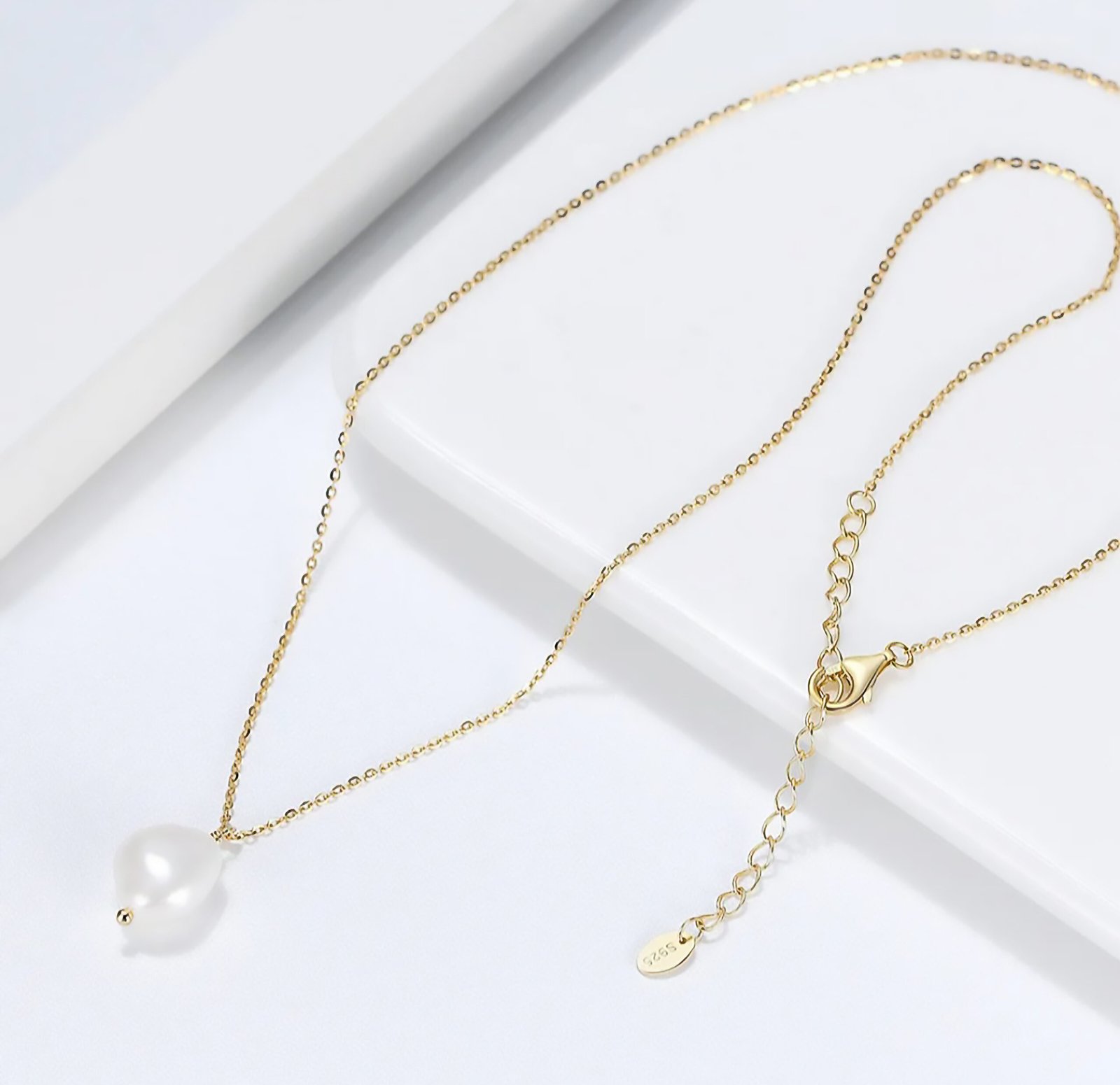 - Design: Solitaire pearl pendant on a delicate chain