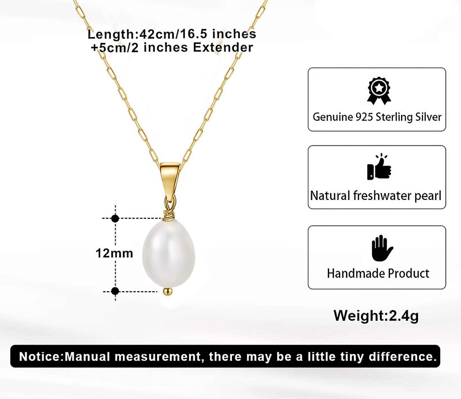 - Materials: S925 sterling silver & 14k gold-plated alloy, natural freshwater pearl