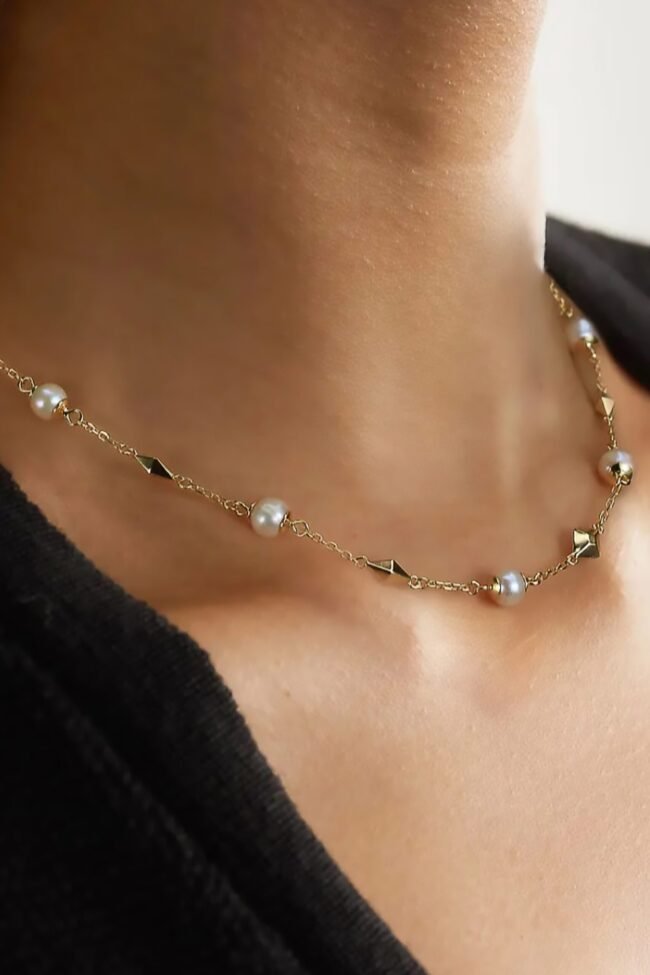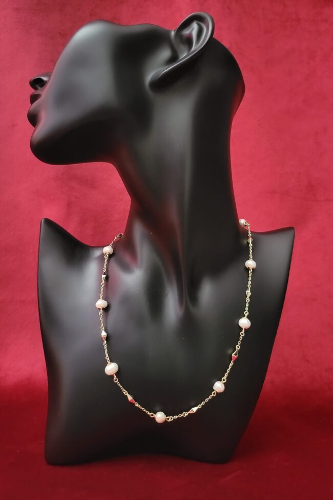 Materials: Cultured natural freshwater pearls 10-11mm, comes in two colours chain: 14k gold plated & silver-plated