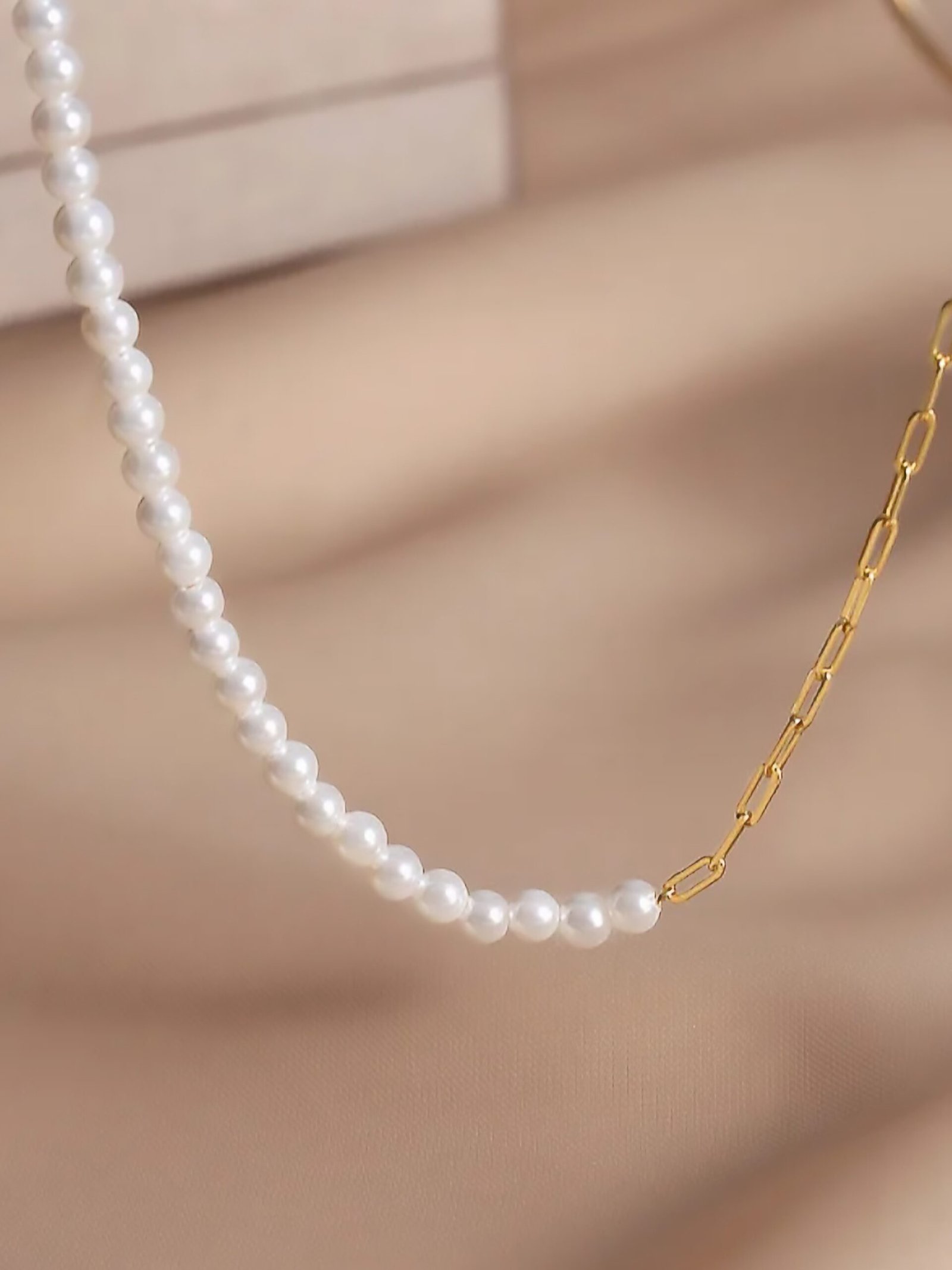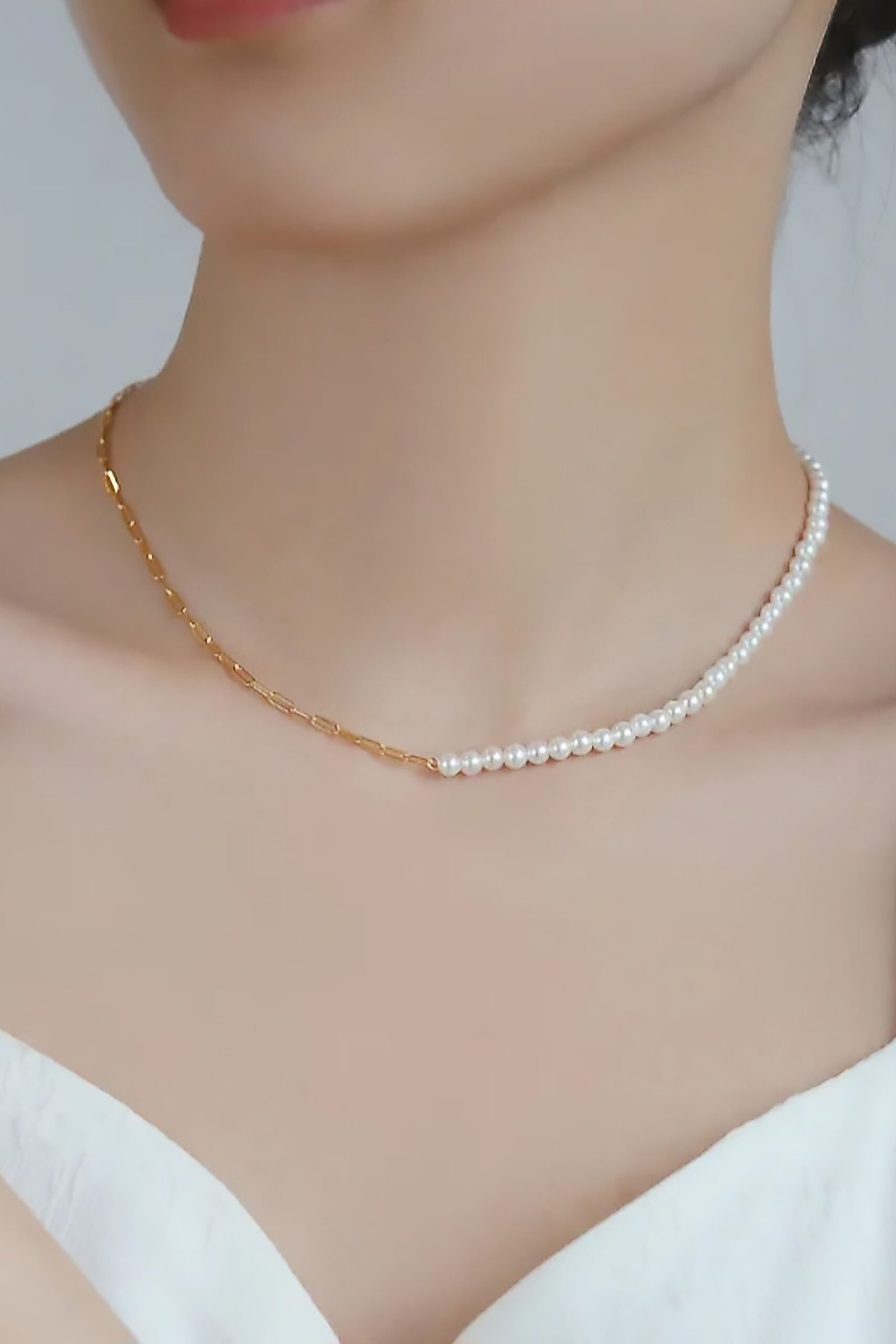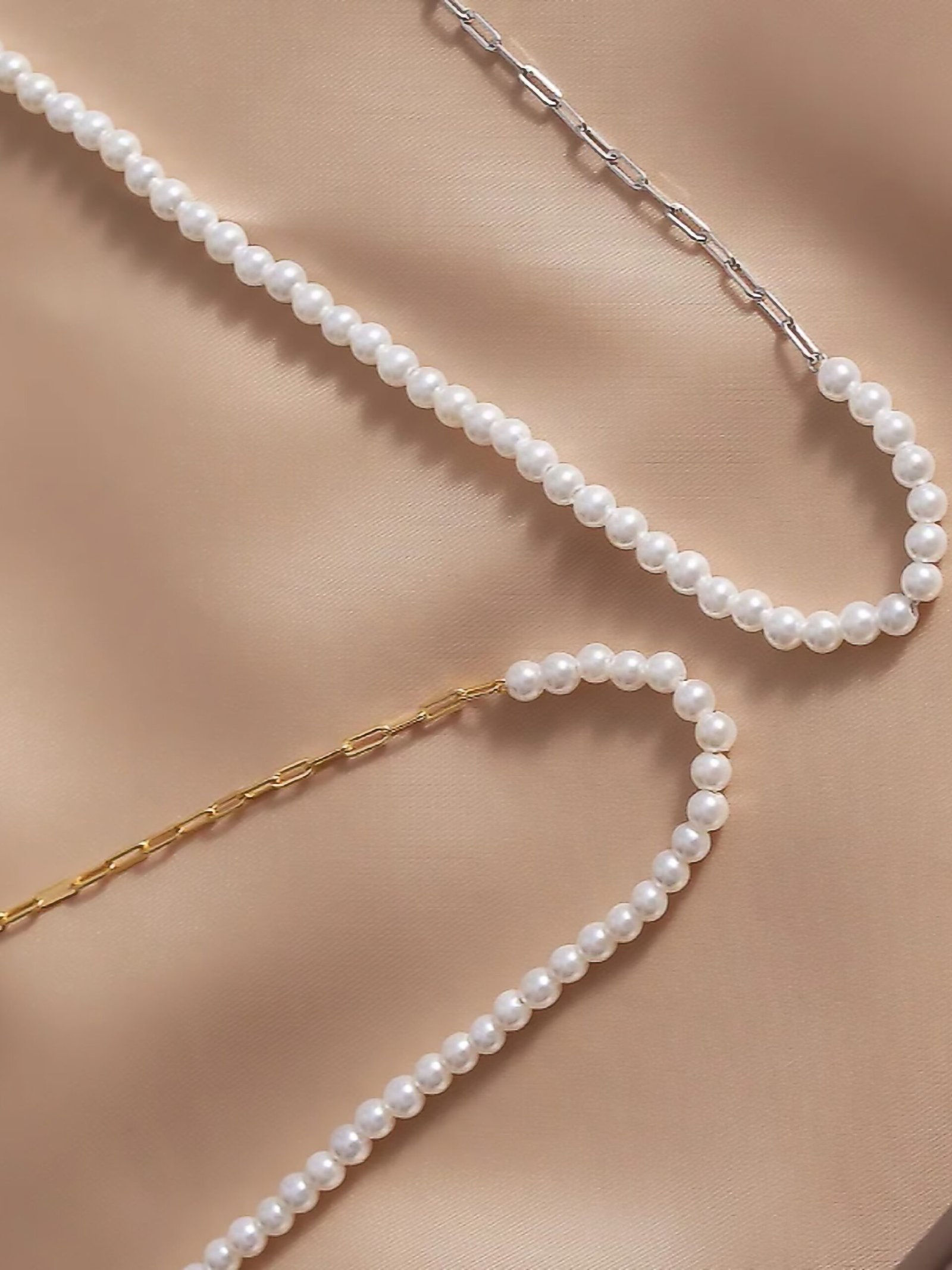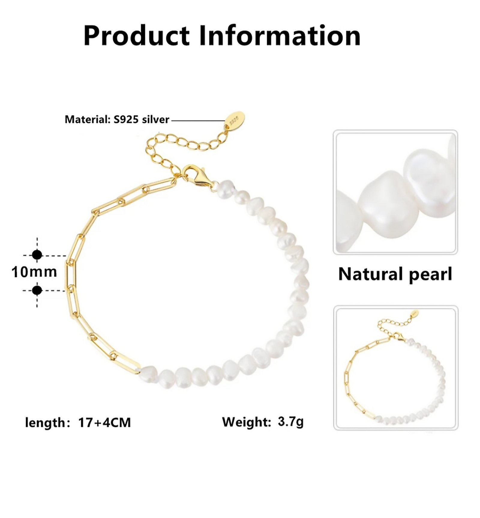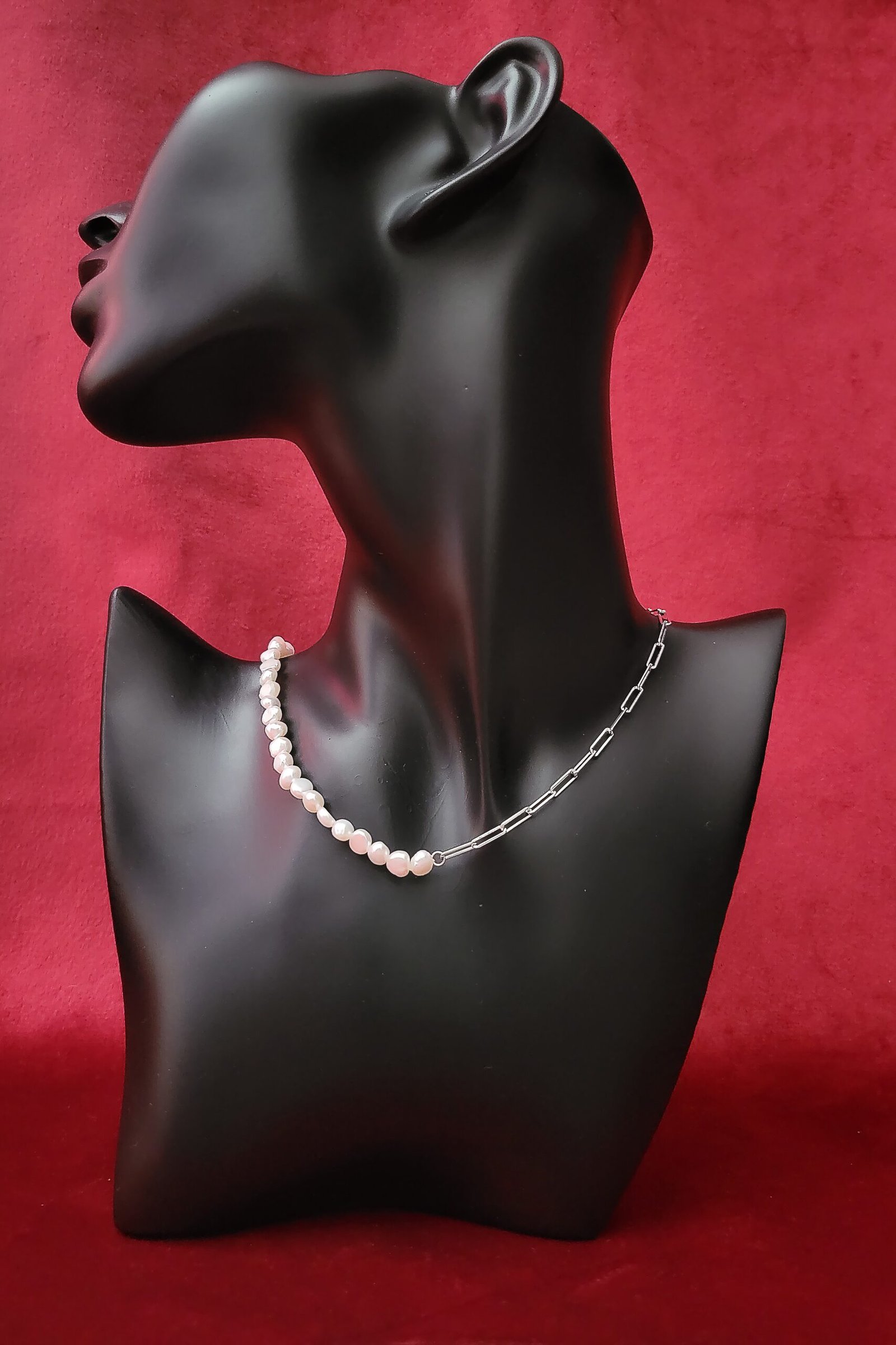 Materials: Cultured natural freshwater pearls 10-11mm, comes in two colours chain: 14k gold plated & silver-plated