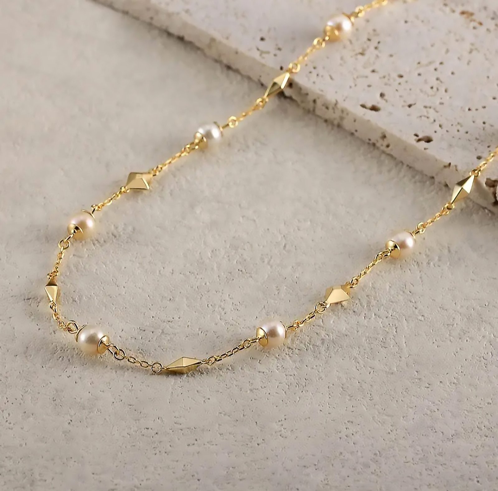 Geometric Pearl Accent Necklace