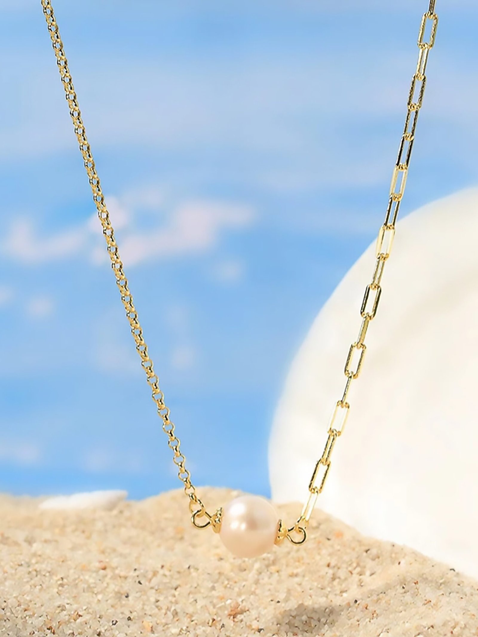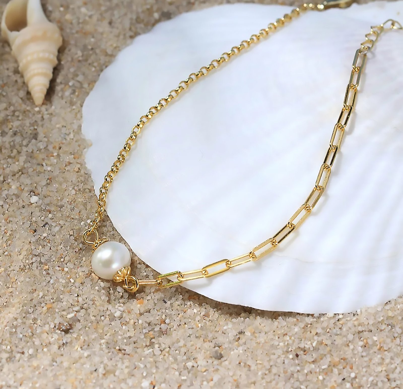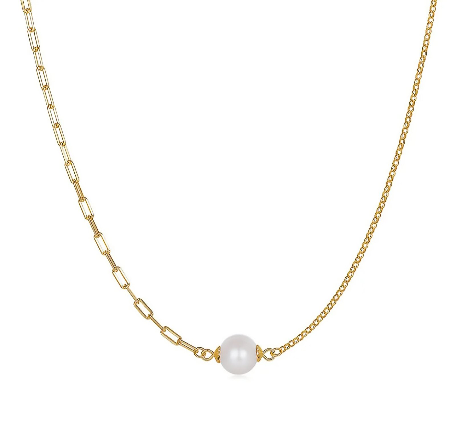 Materials: Natural freshwater pearl, 14k gold-plated mixed-link chain