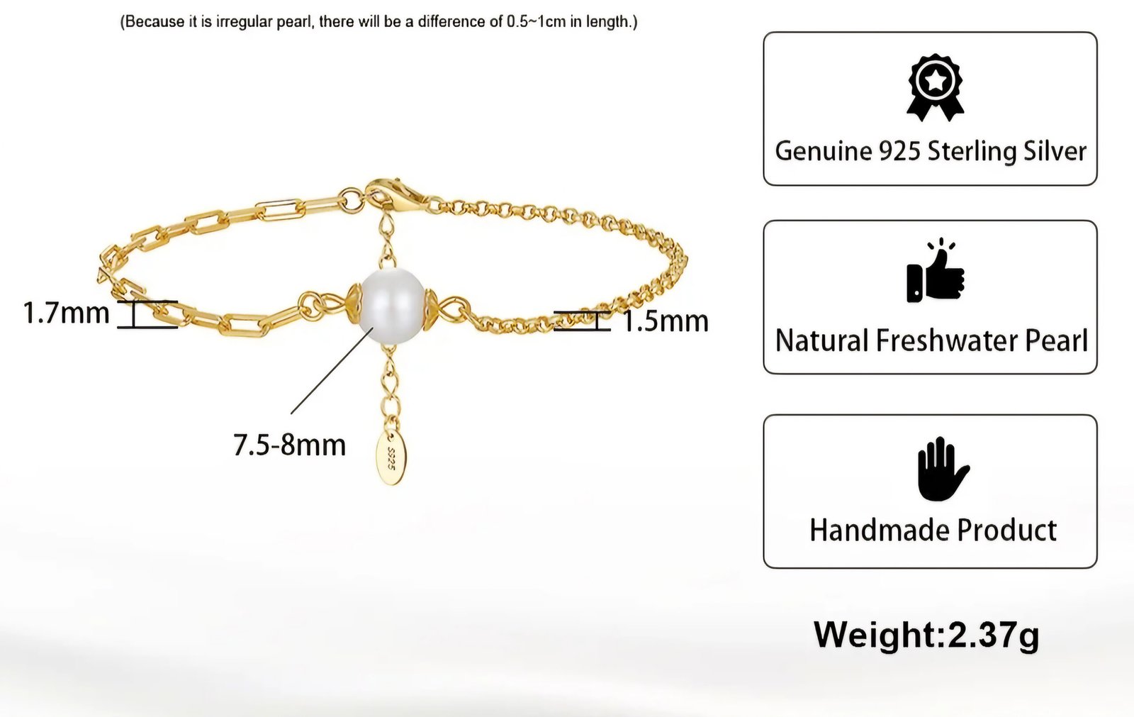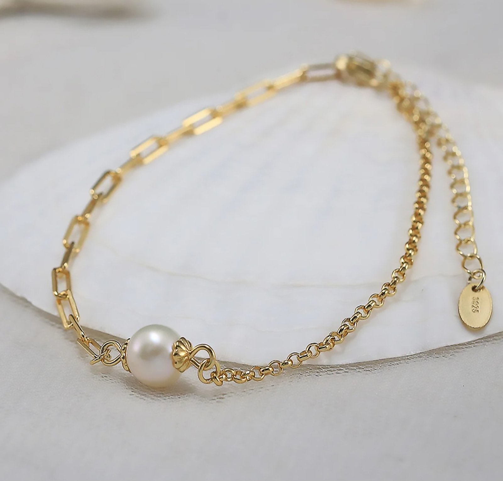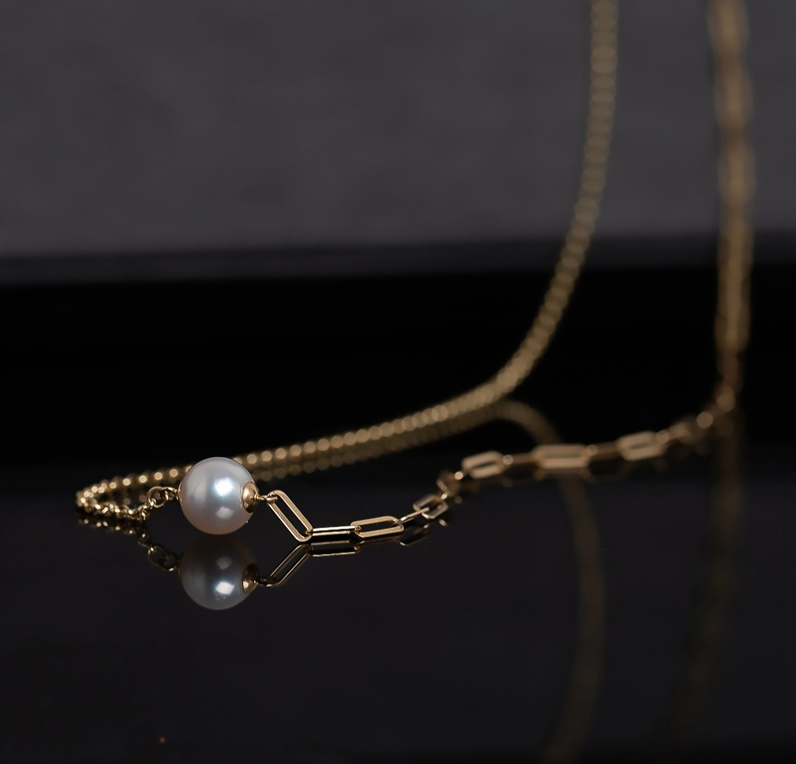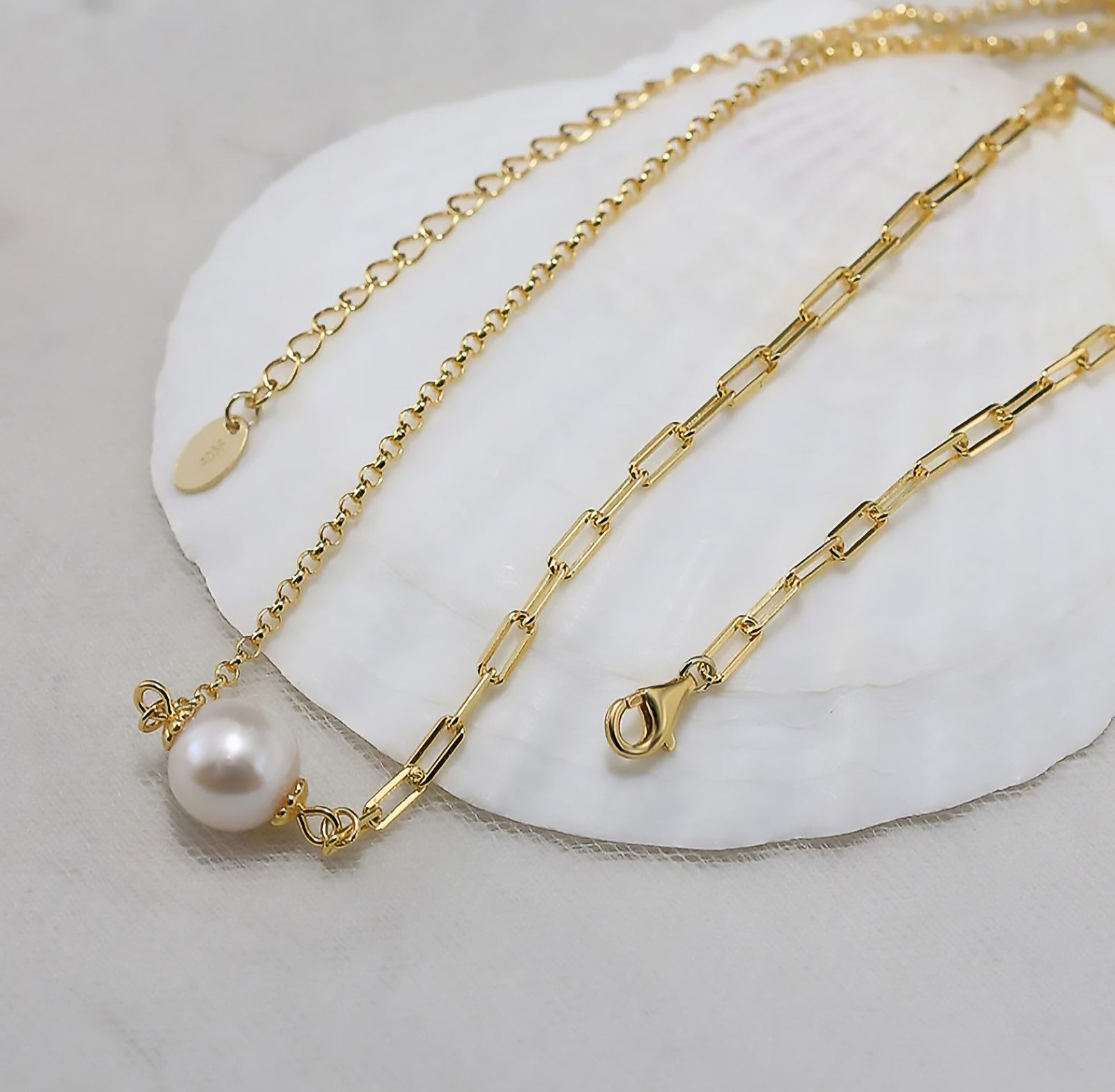 Materials: Natural freshwater pearl, 14k gold-plated mixed-link chain