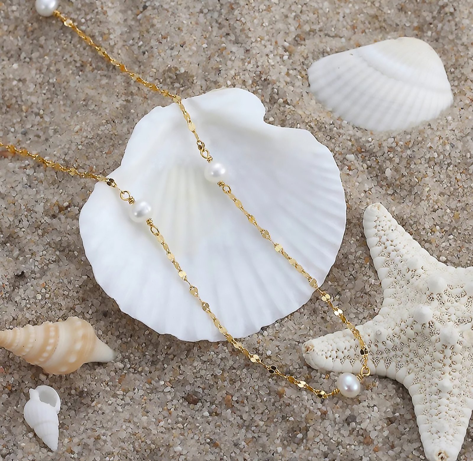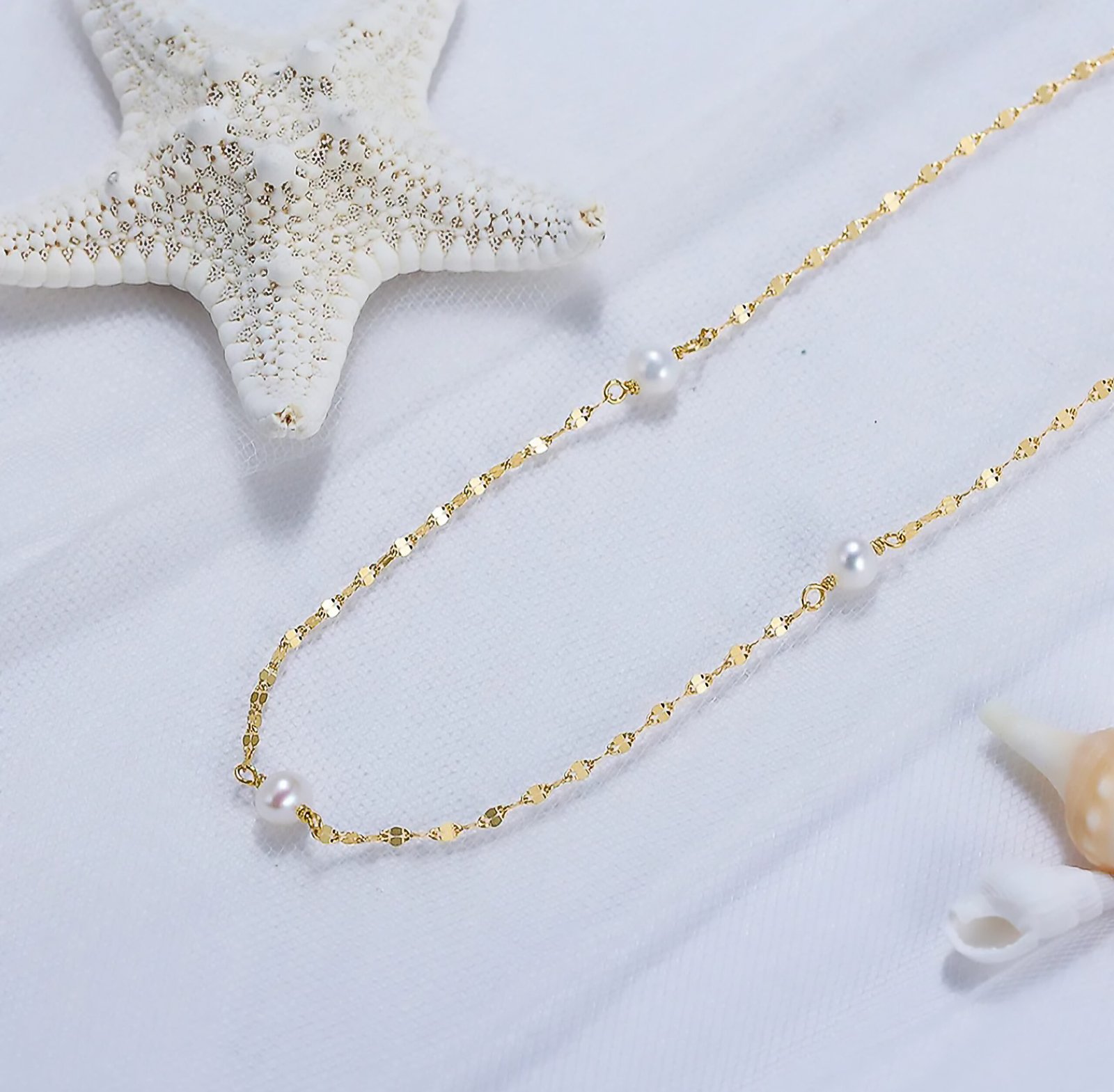 Design: Thin chain with three evenly spaced pearls