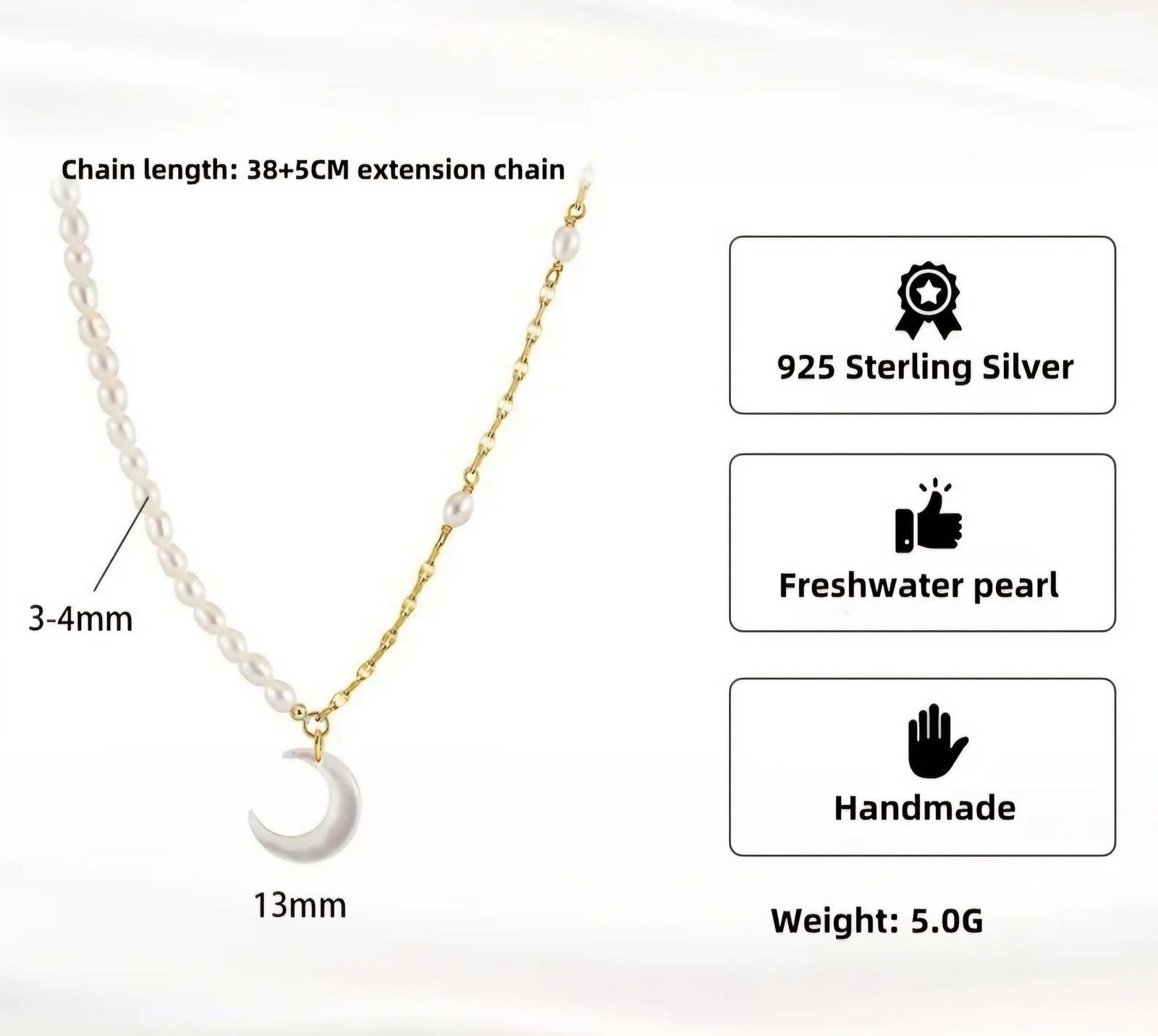 Perfect for dreamers and night-sky lovers, this necklace brings a soft lunar glow to your everyday or evening look.
