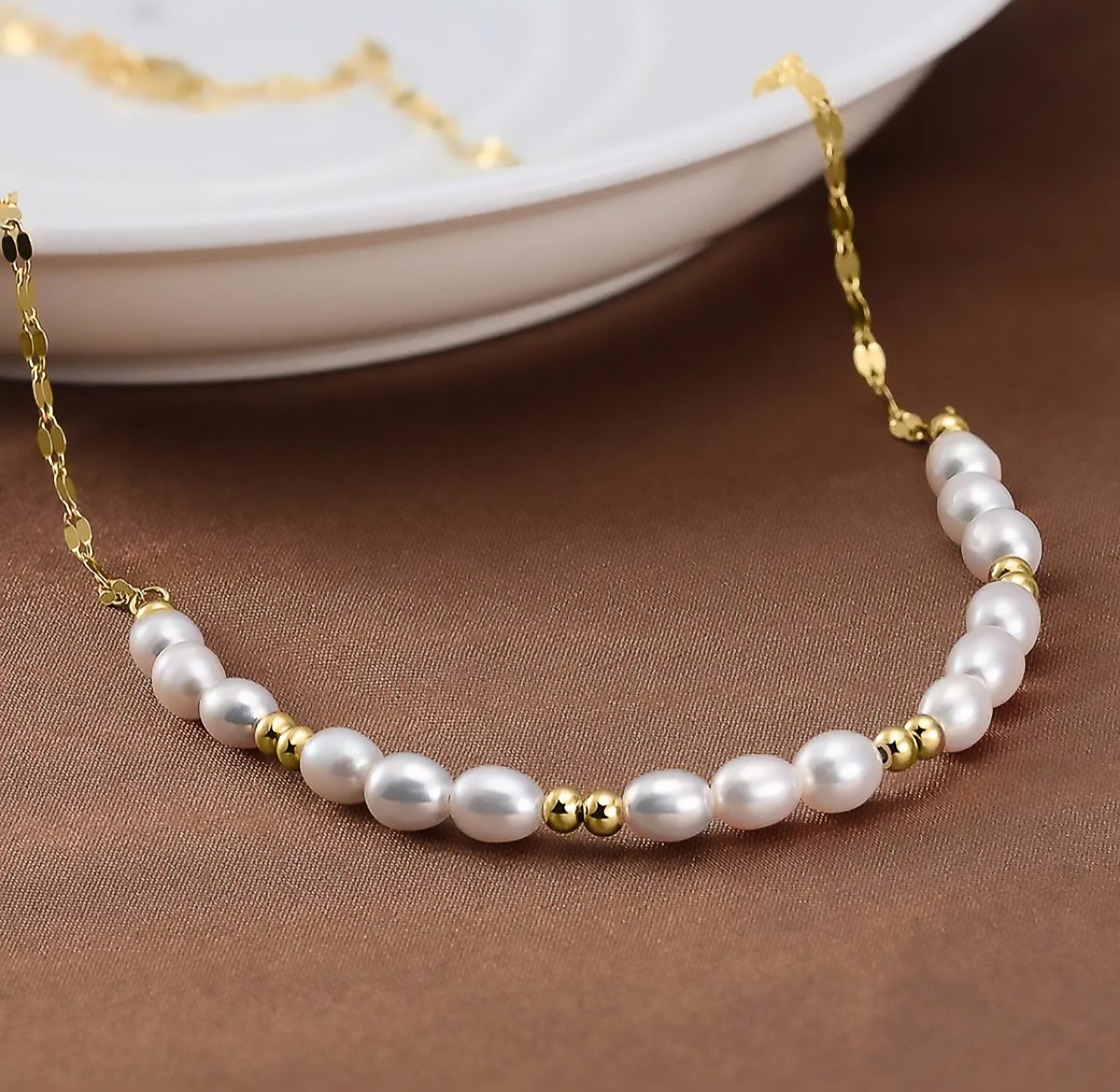 Materials: 14k gold-plated alloy, natural freshwater pearls size about 4-5mm