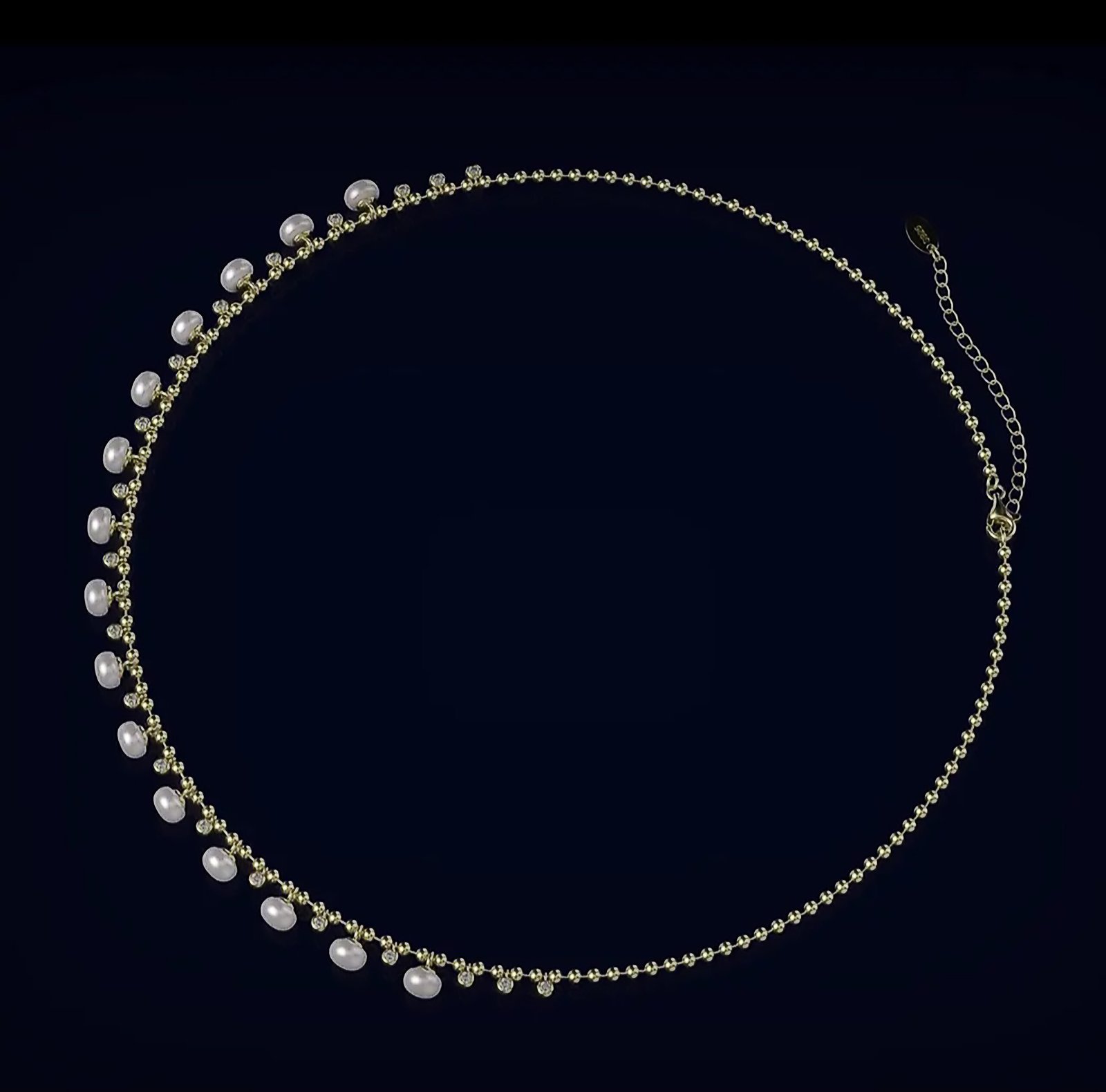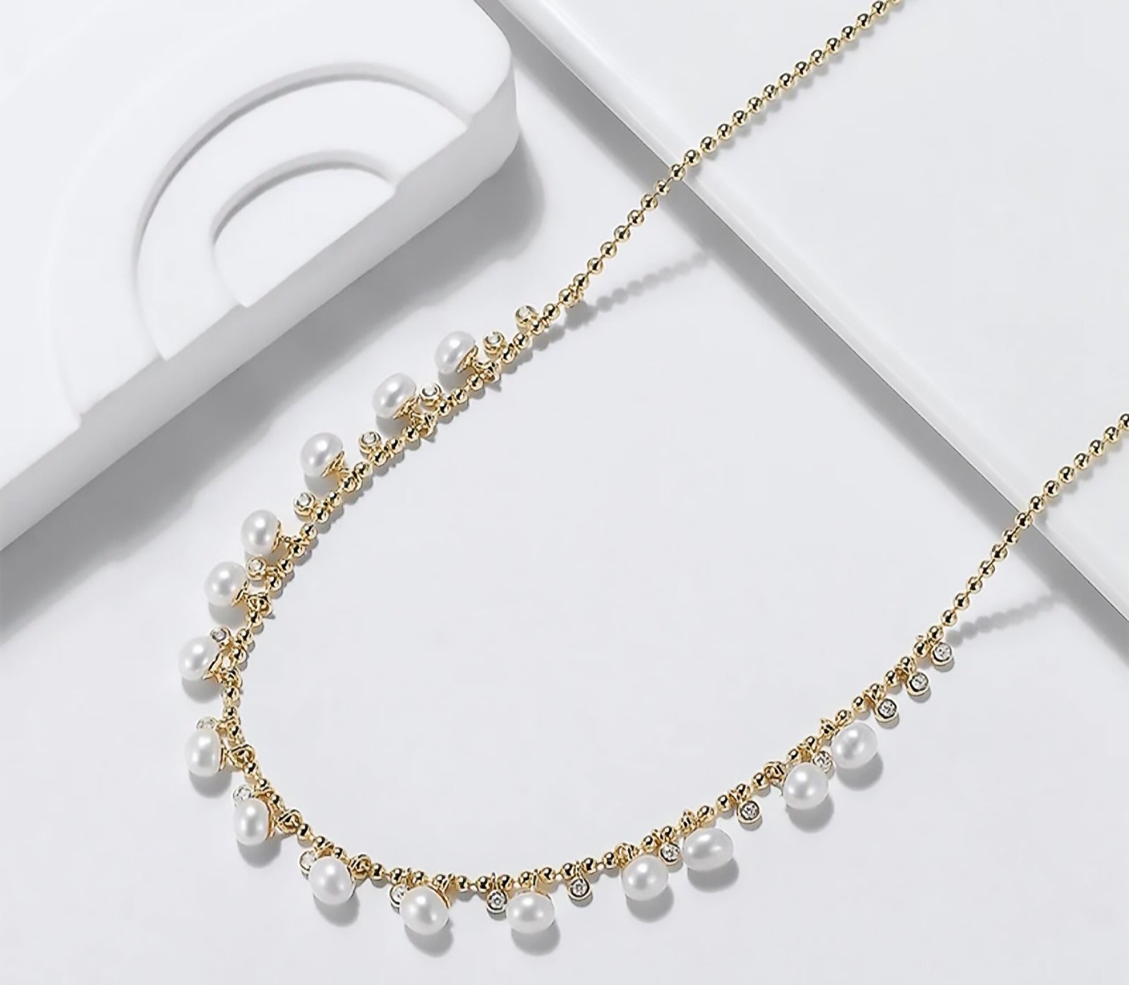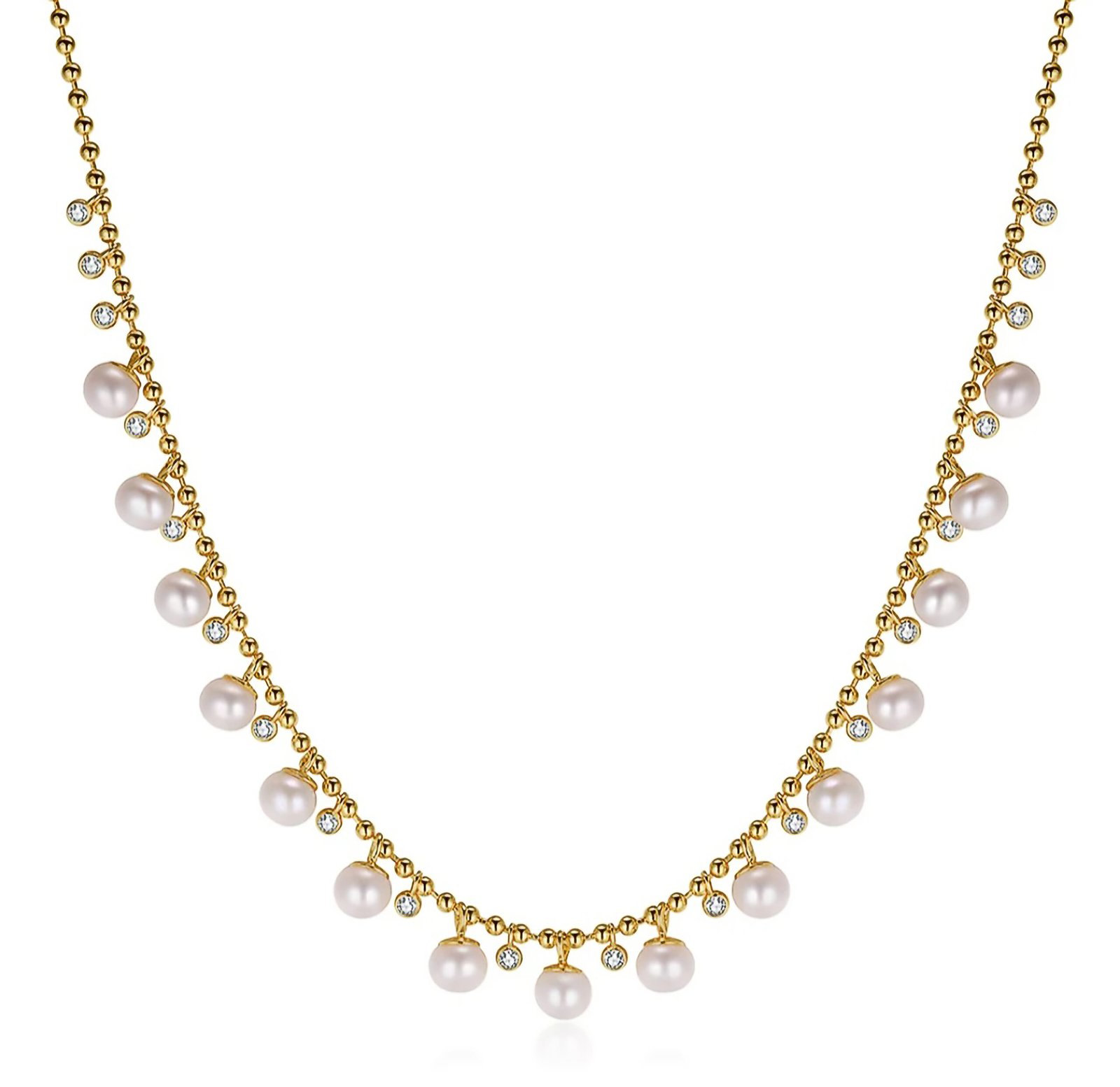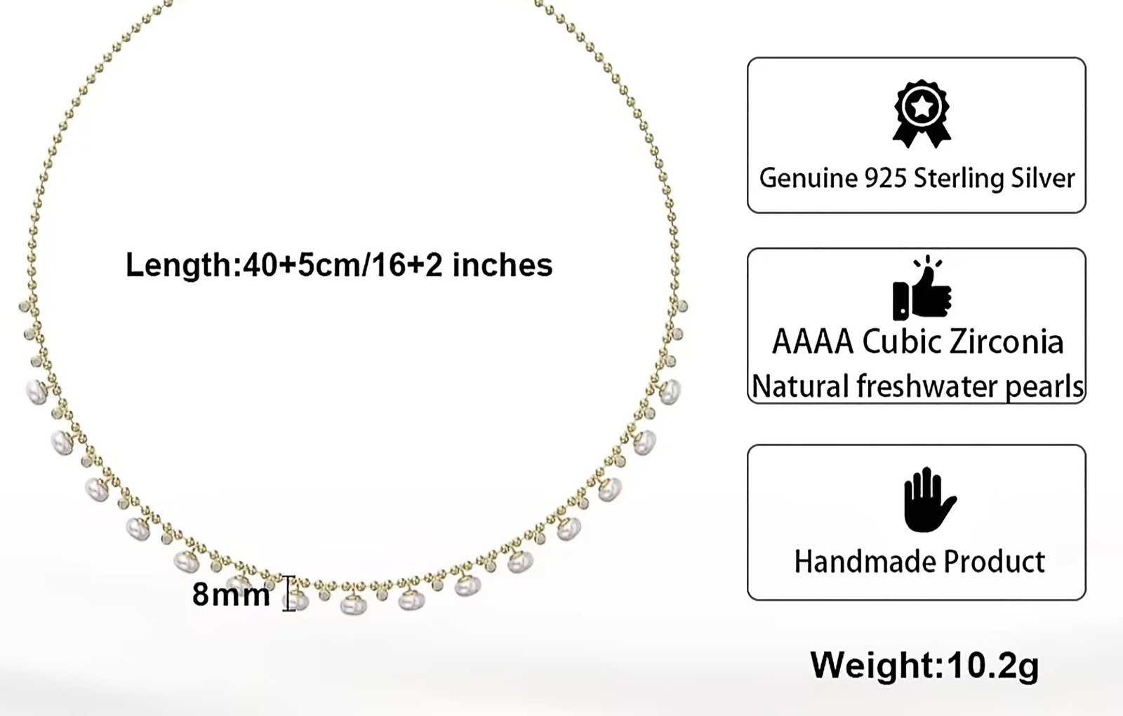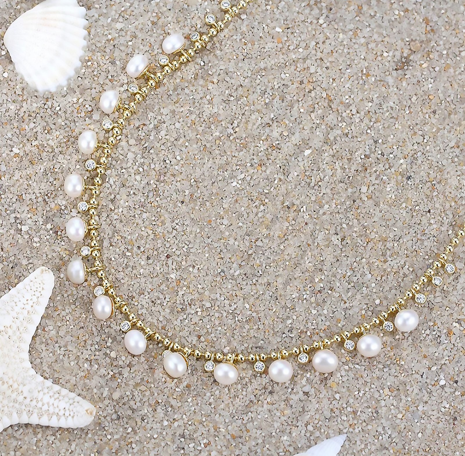 Accents: 8mm Baroque natural freshwater pearls and cubic zirconia crystals