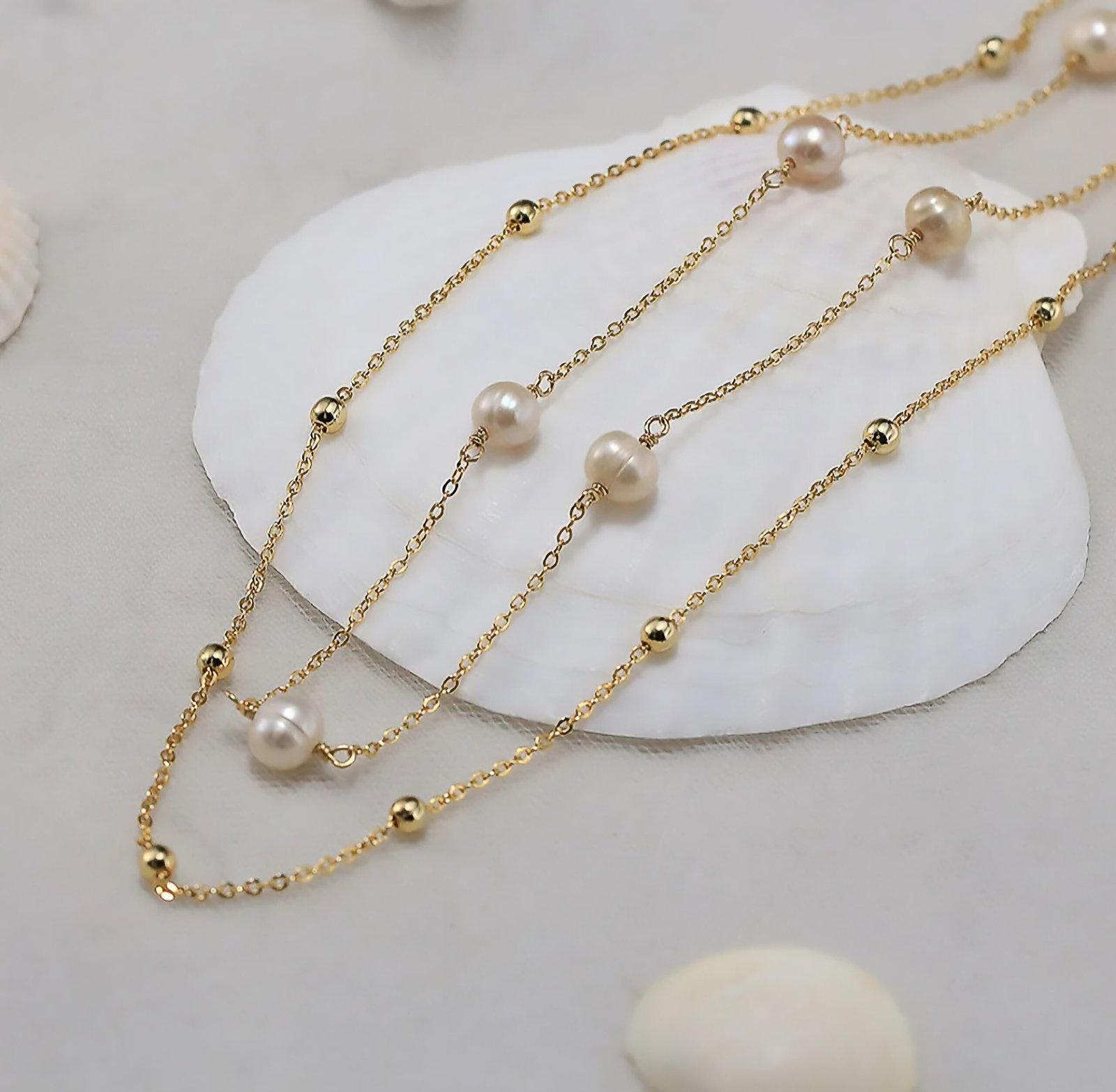 Materials: 14k gold alloy, natural freshwater pearls about 5mm