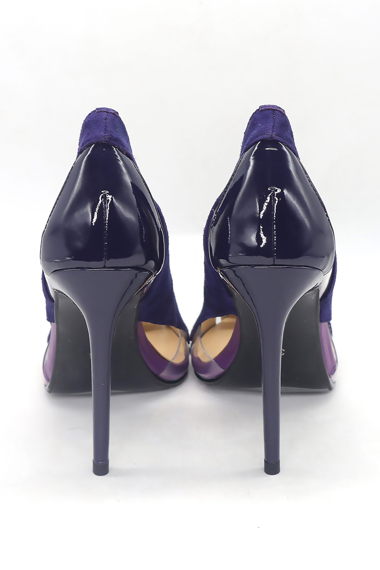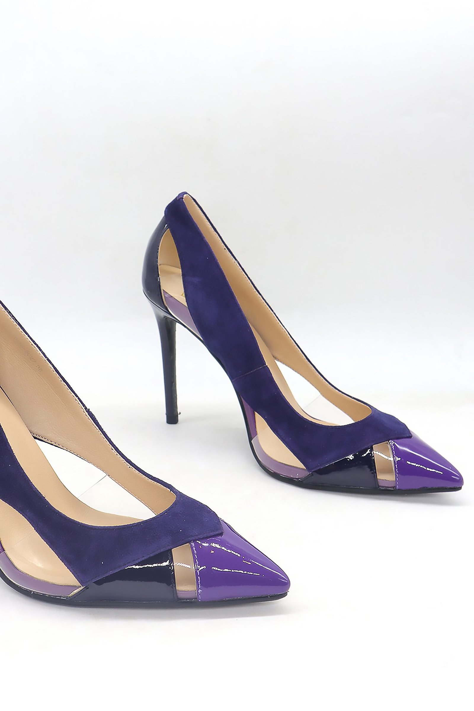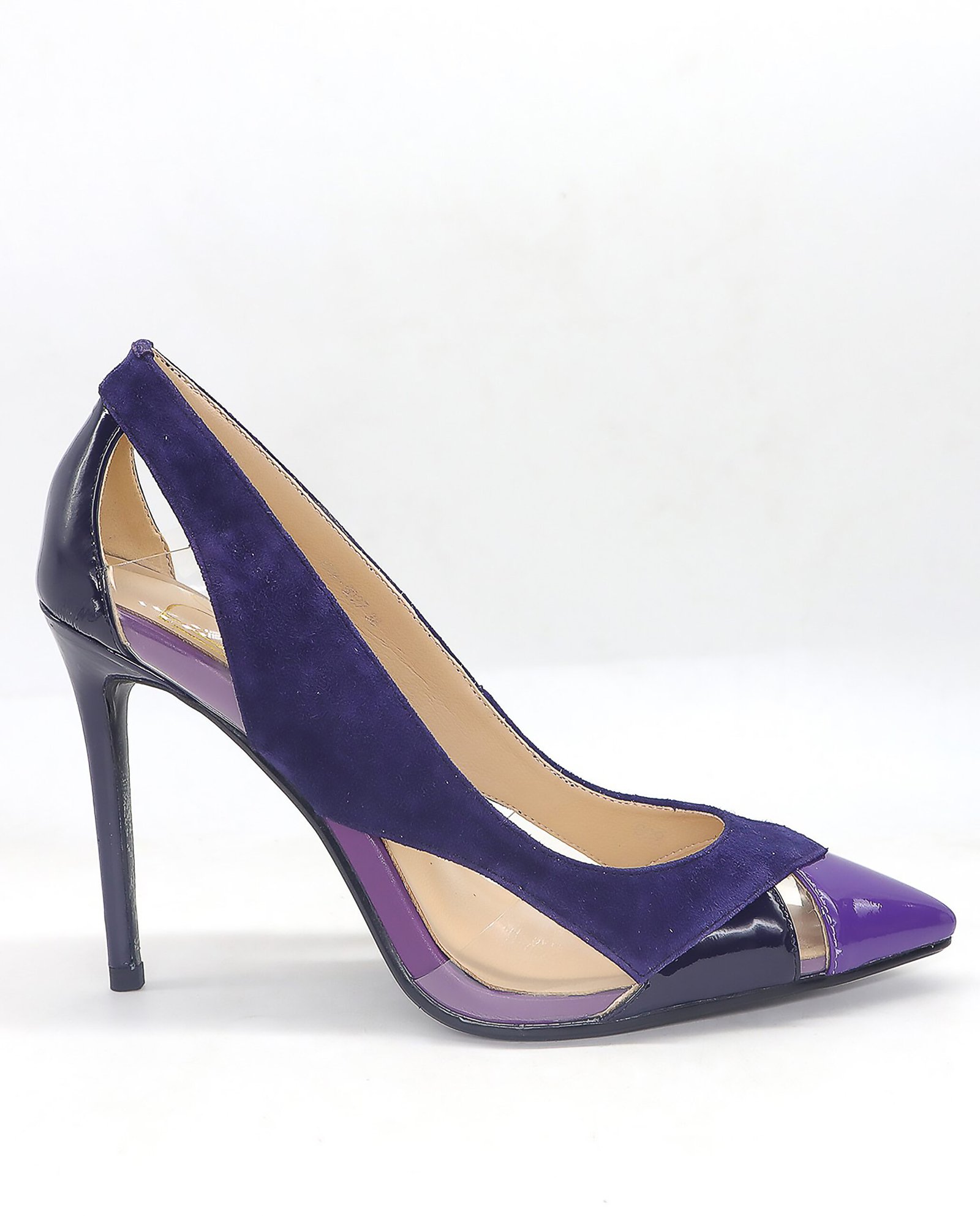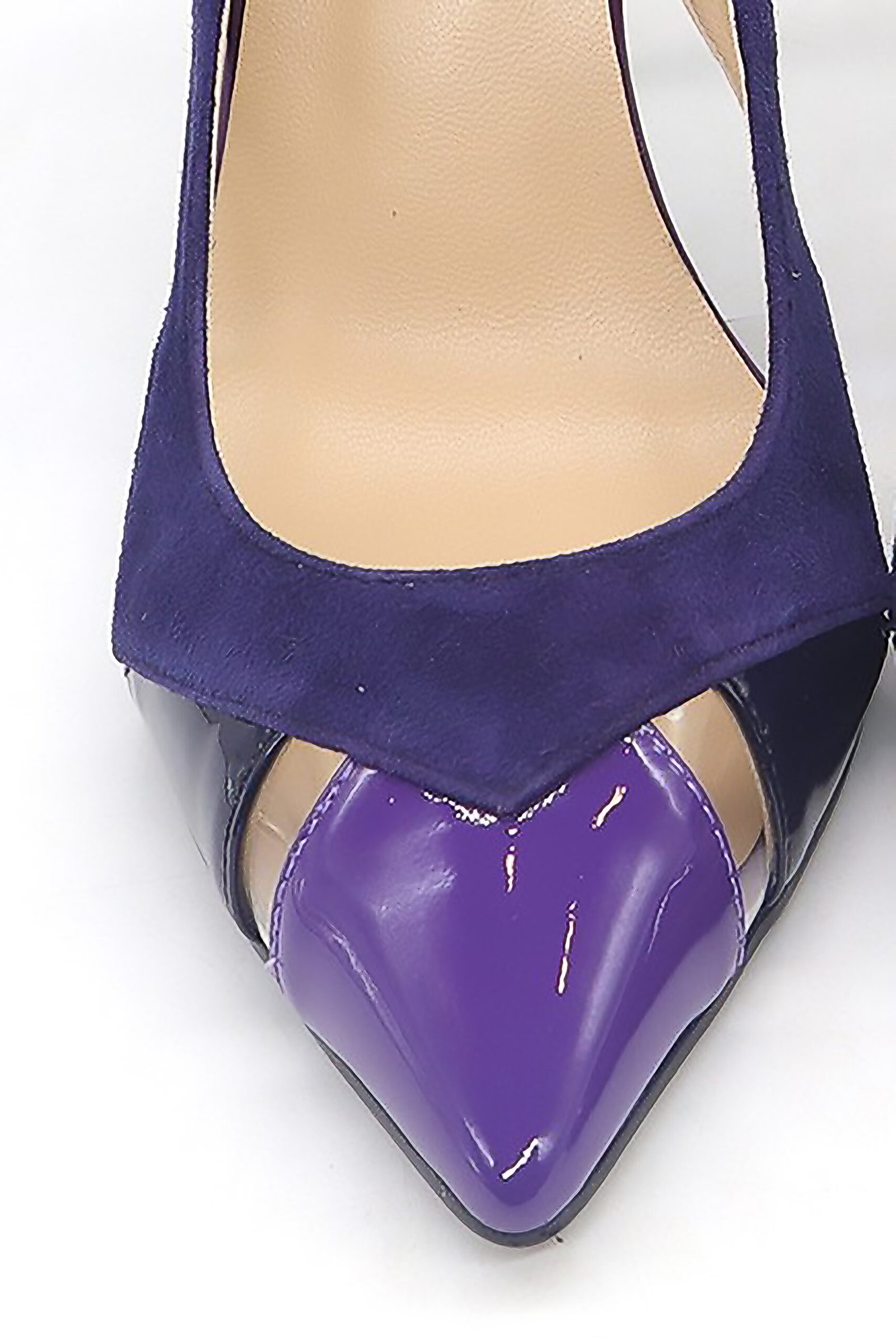 Lush suede meets high-shine lavender in this vibrant cutout design. Transparencies along the side add intrigue and edge, making this the perfect choice for fashion-forward evenings. Designed to captivate with every step.