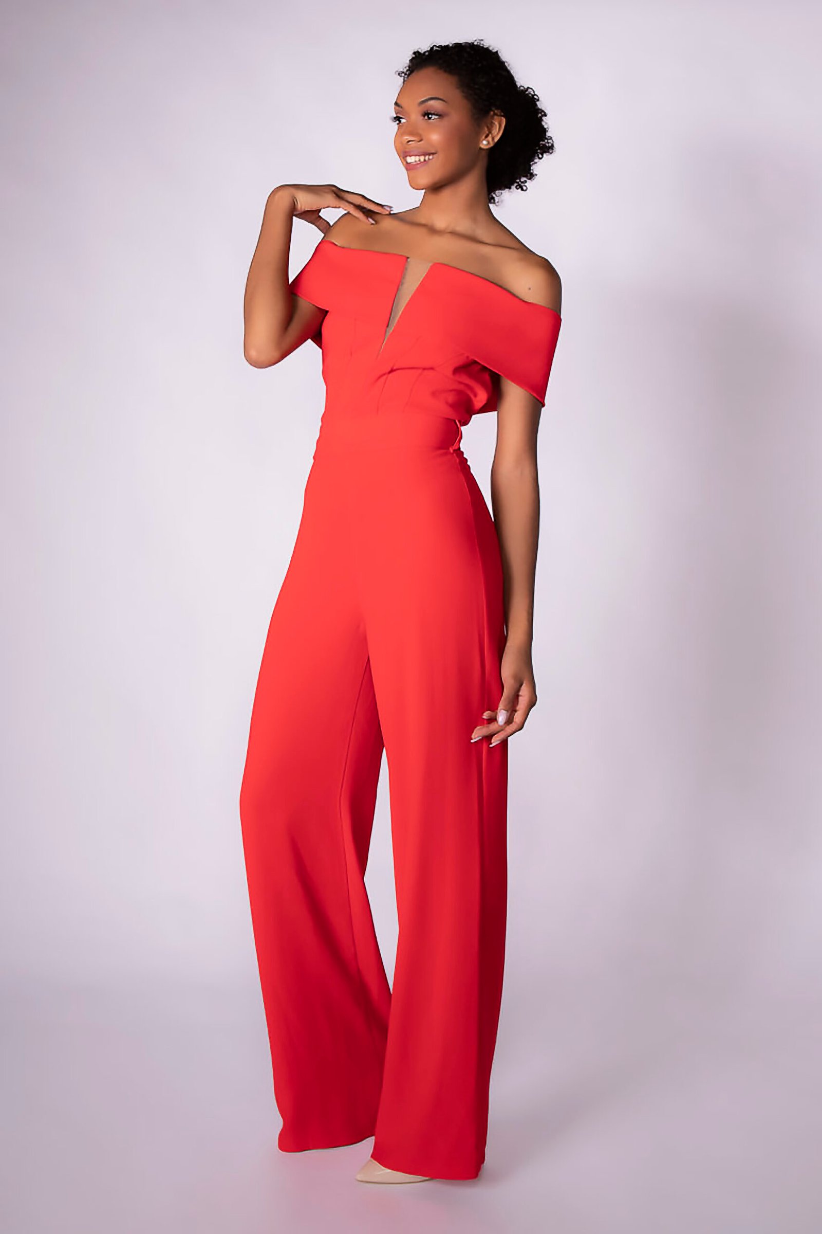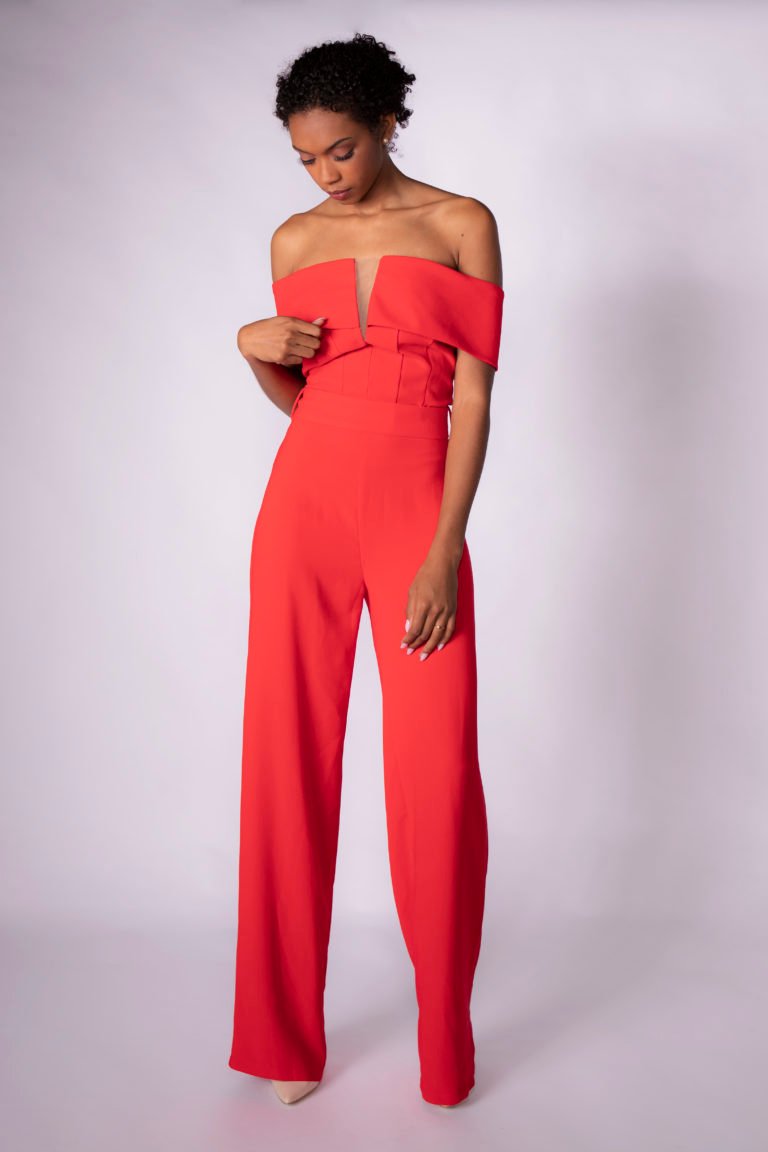 . Product style: V-bandeau off shoulders jumpsuit
